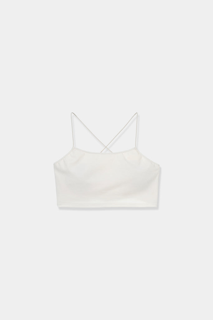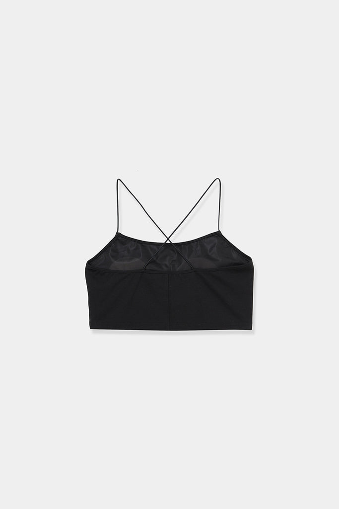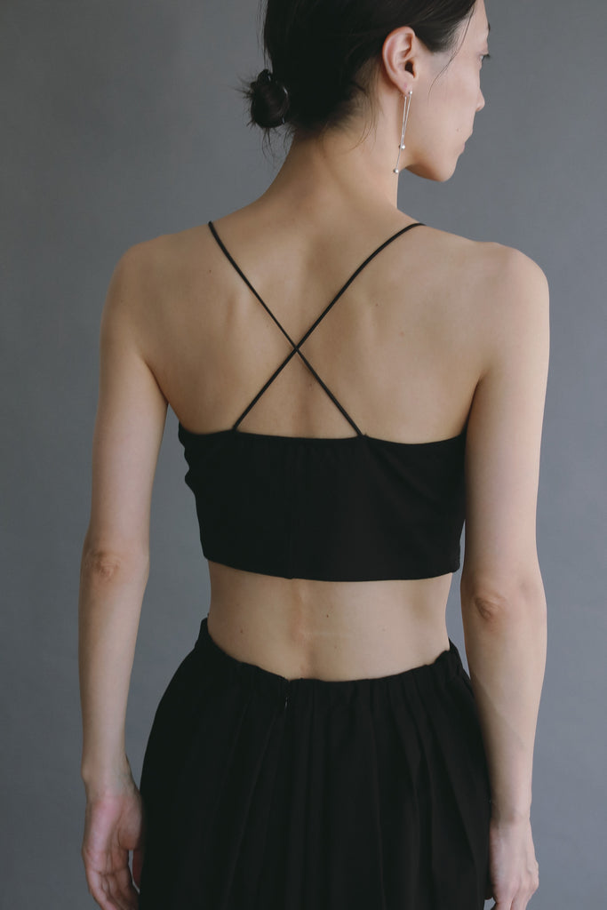 背中に施したクロスストラップが印象的な、ブラトップ。