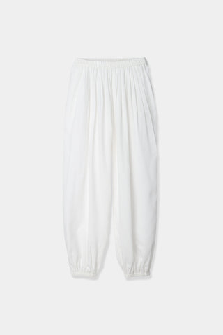 秋冬に綿地アイテムという新鮮さが、ハイレベルなスタイリングへと導くコットンボリュームパンツ。