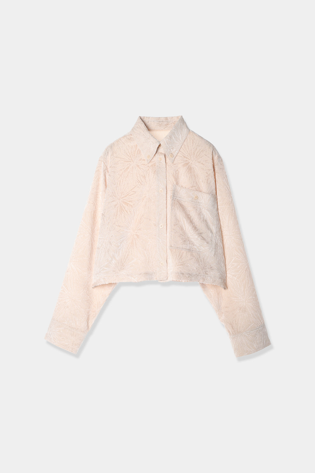 熟練のカット職人の手作業によって表現されたモールジャガードが魅力のクロップドシャツ。