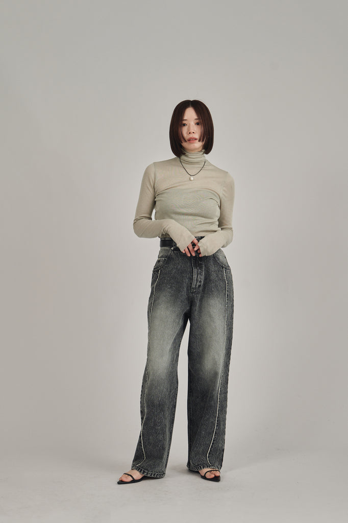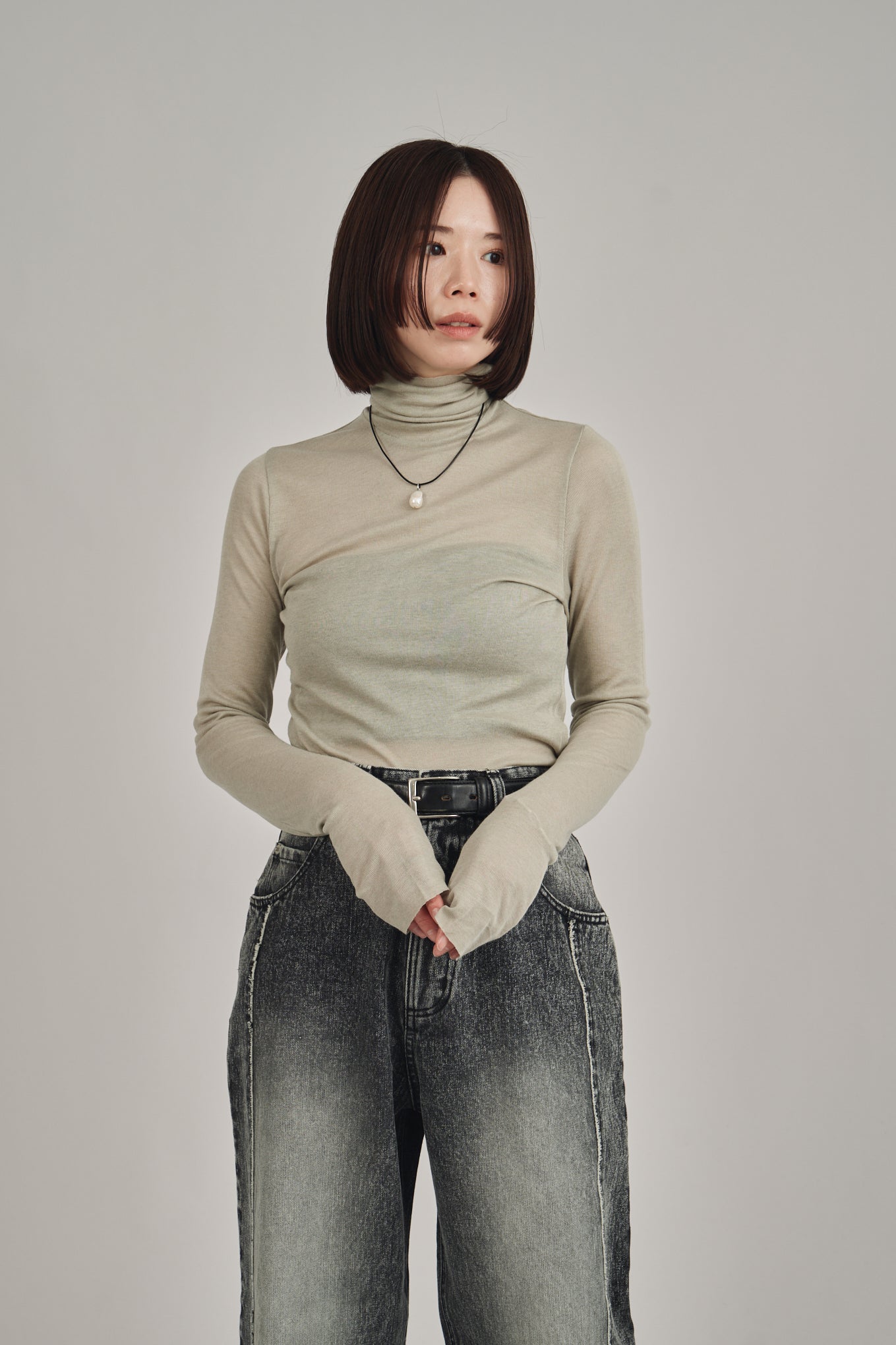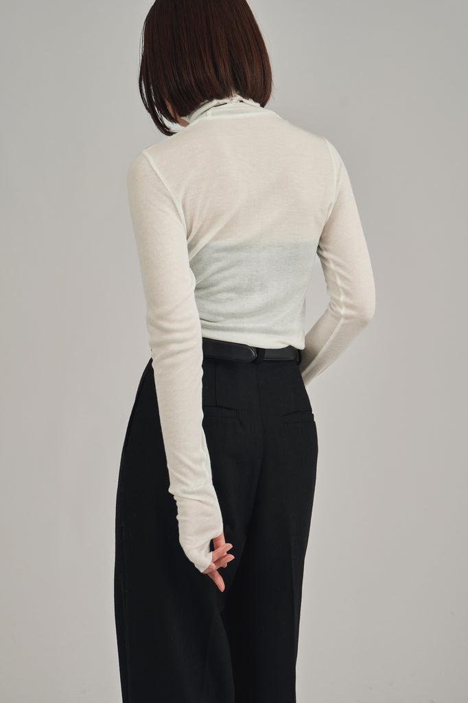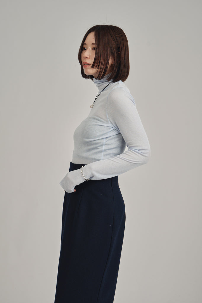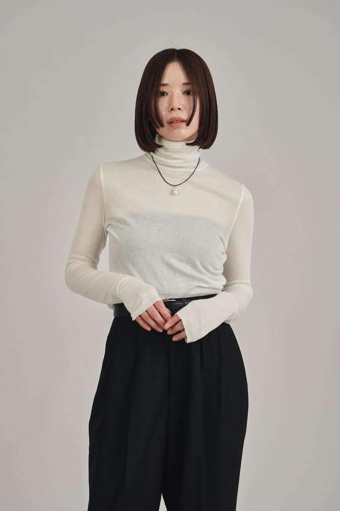 lourenで人気のhigh neck sheer tops をウールミックス素材で提案