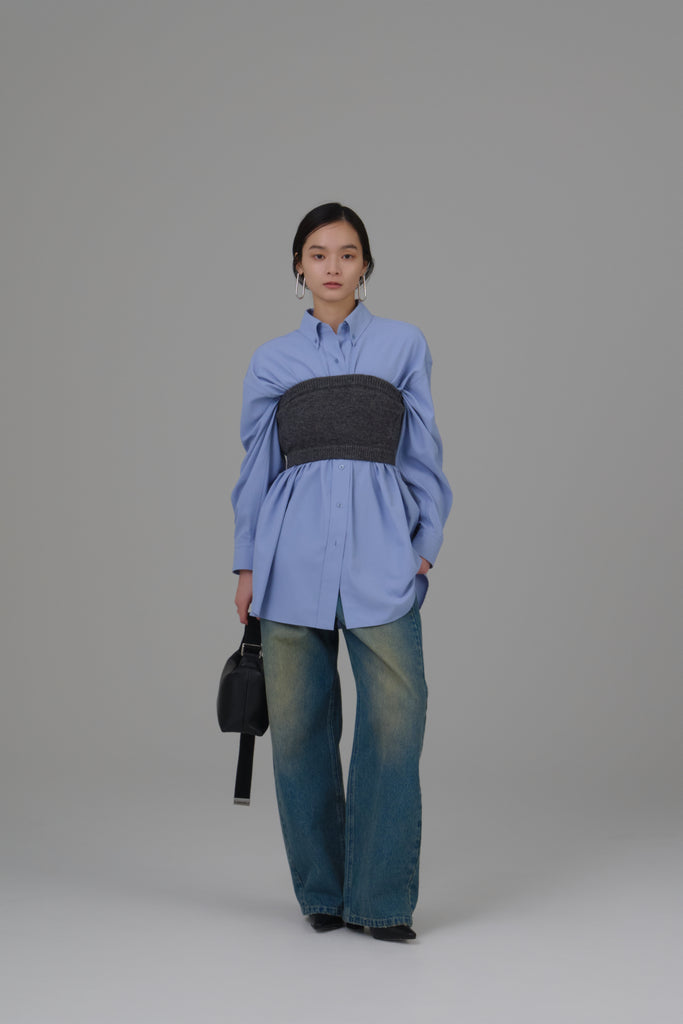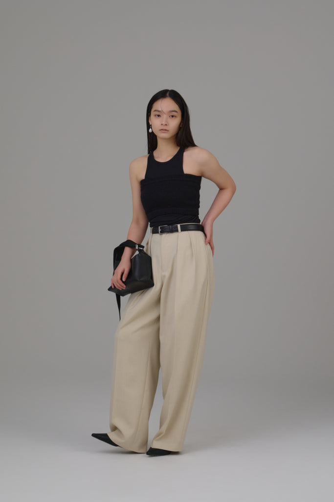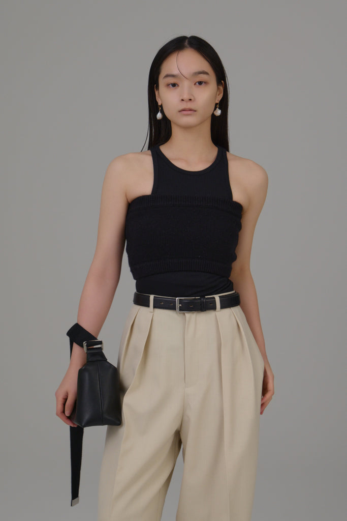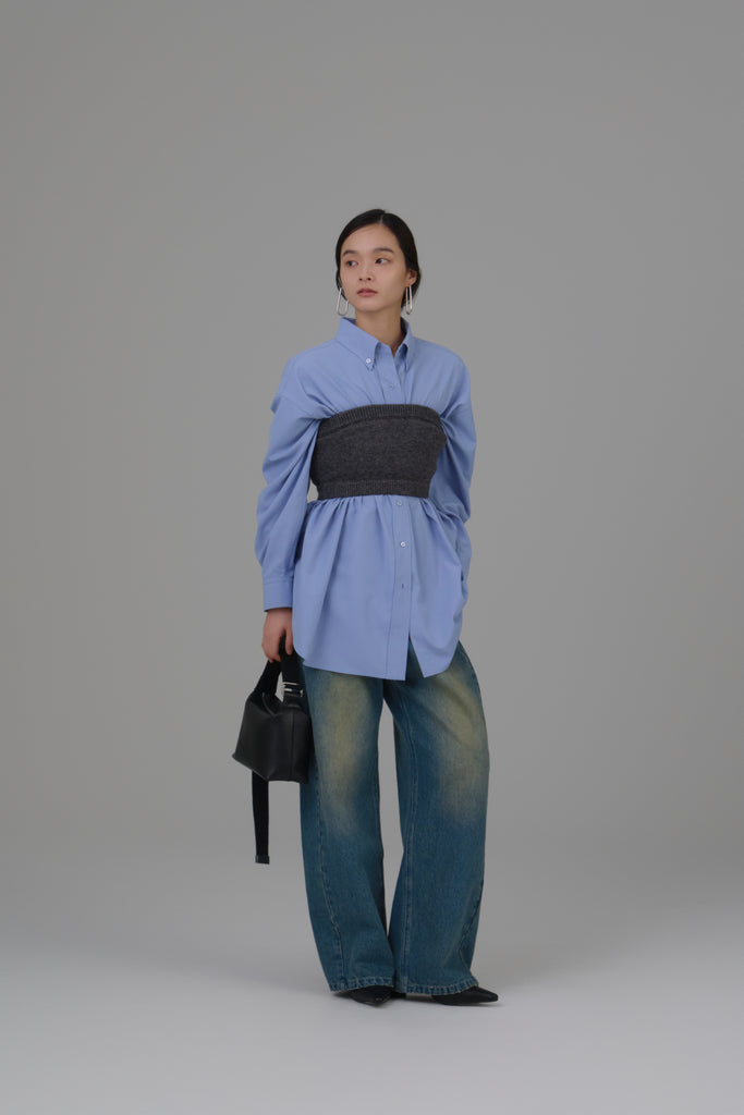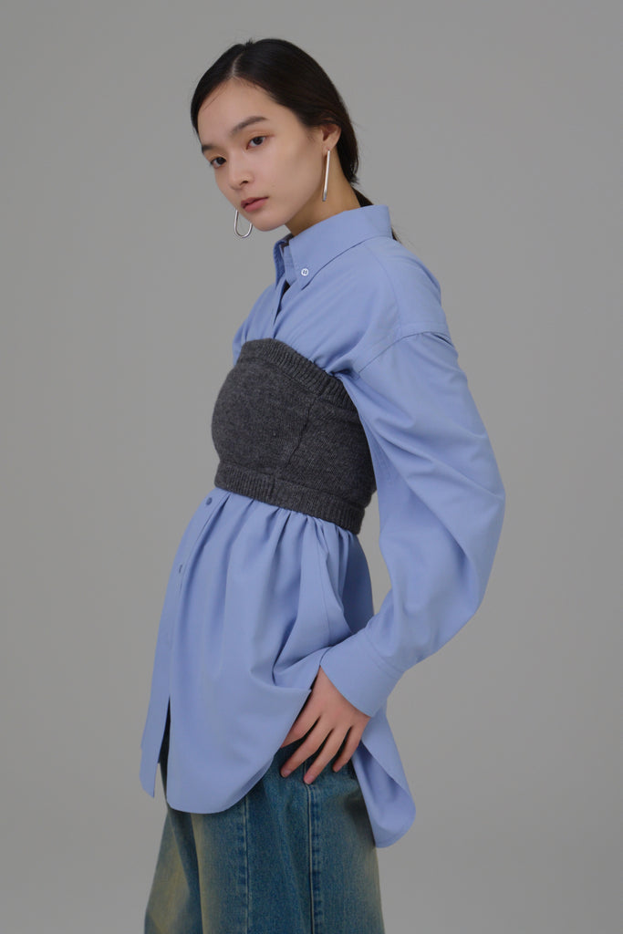 インナー使いはもちろん、シャツやカットソーの上に着用すればニットビスチェとしてスタイリングのポイントに。