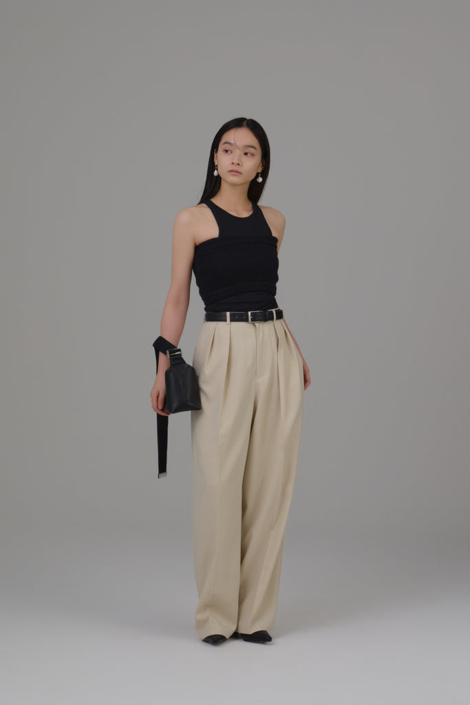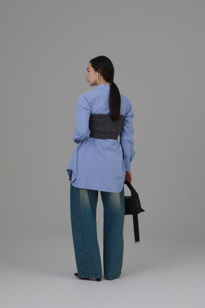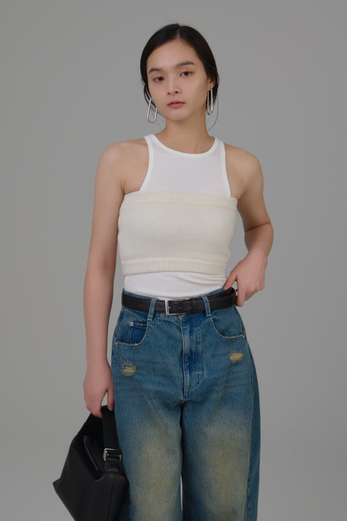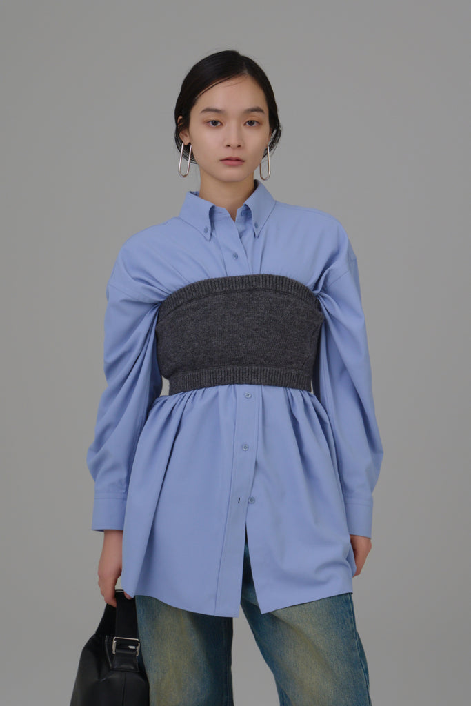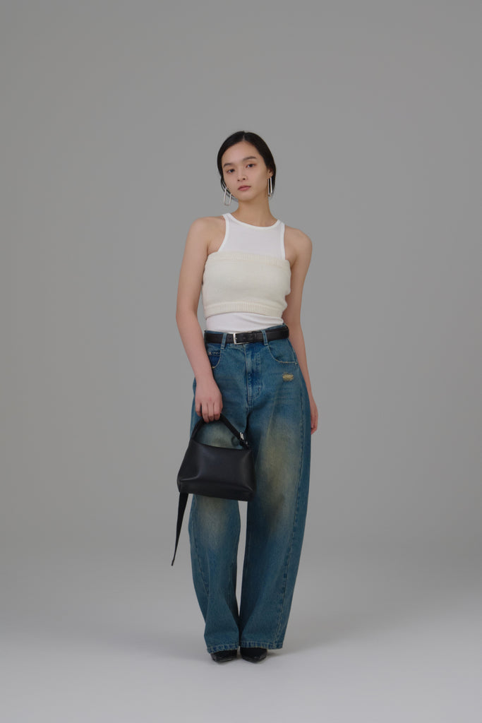 インナー使いはもちろん、シャツやカットソーの上に着用すればニットビスチェとしてスタイリングのポイントに。