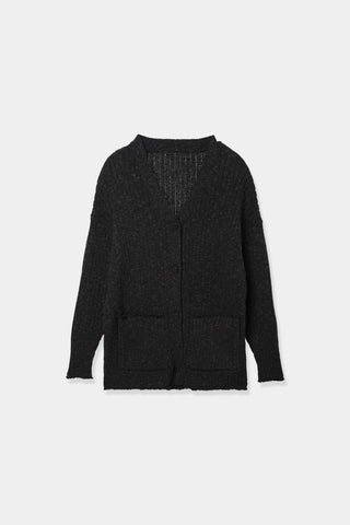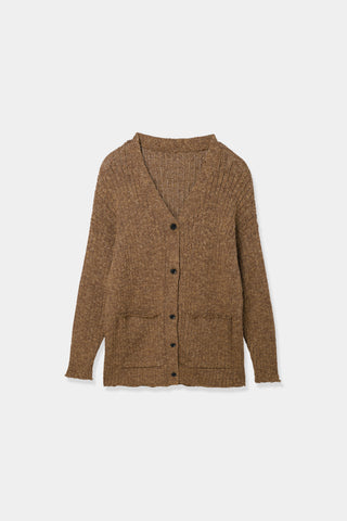 フロントのデザインポケットが特徴のメランジニットカーディガン。