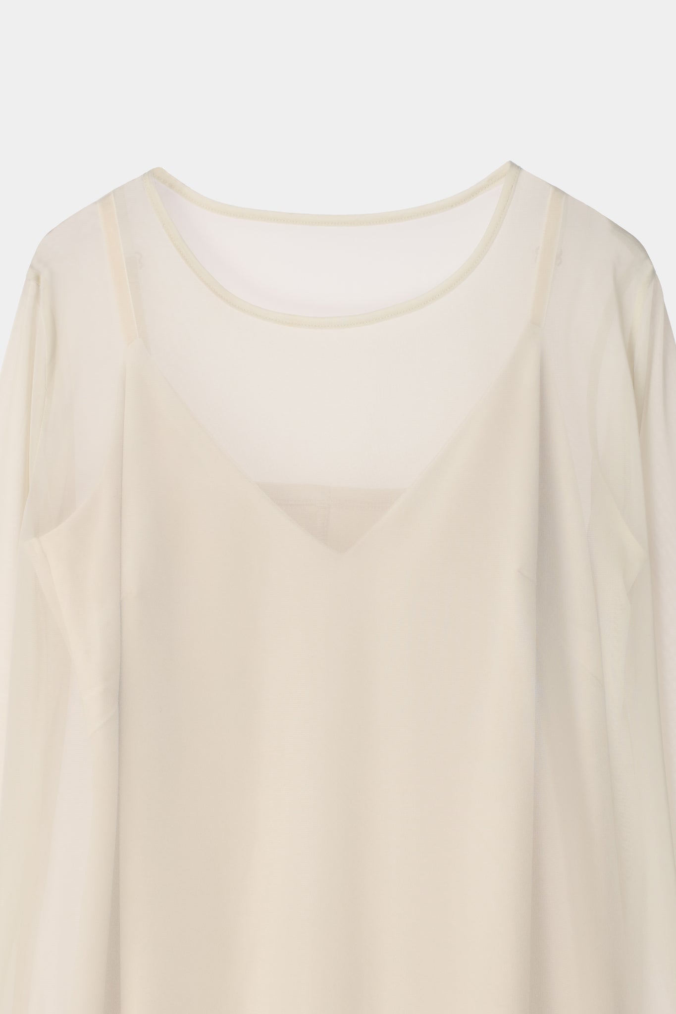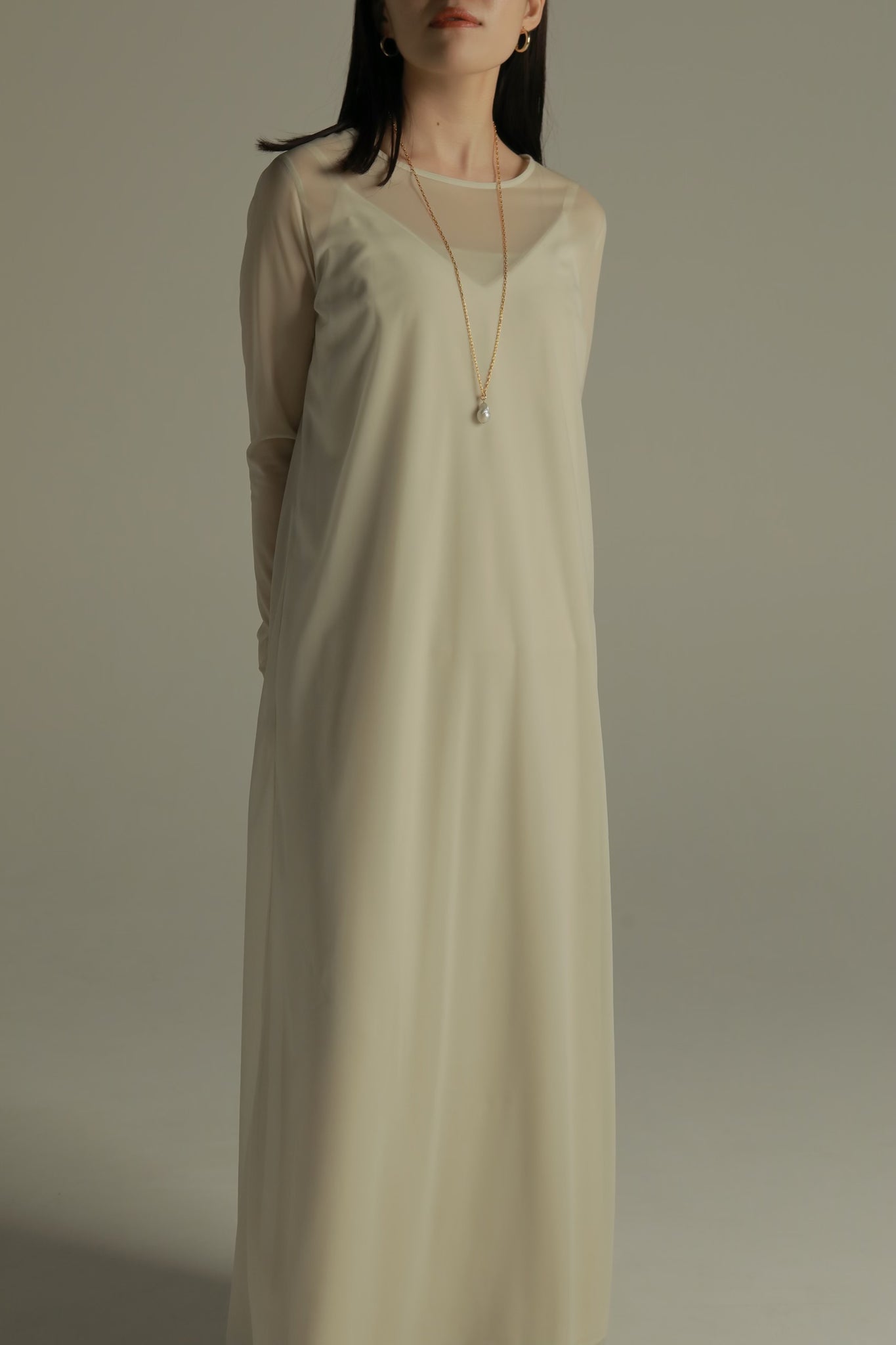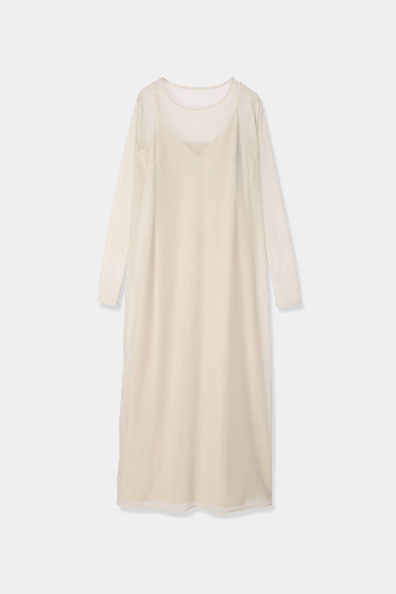 透け感のあるシースルードレスと、程よく光沢のあるベロアキャミソールドレスがセットになったレイヤードドレス。