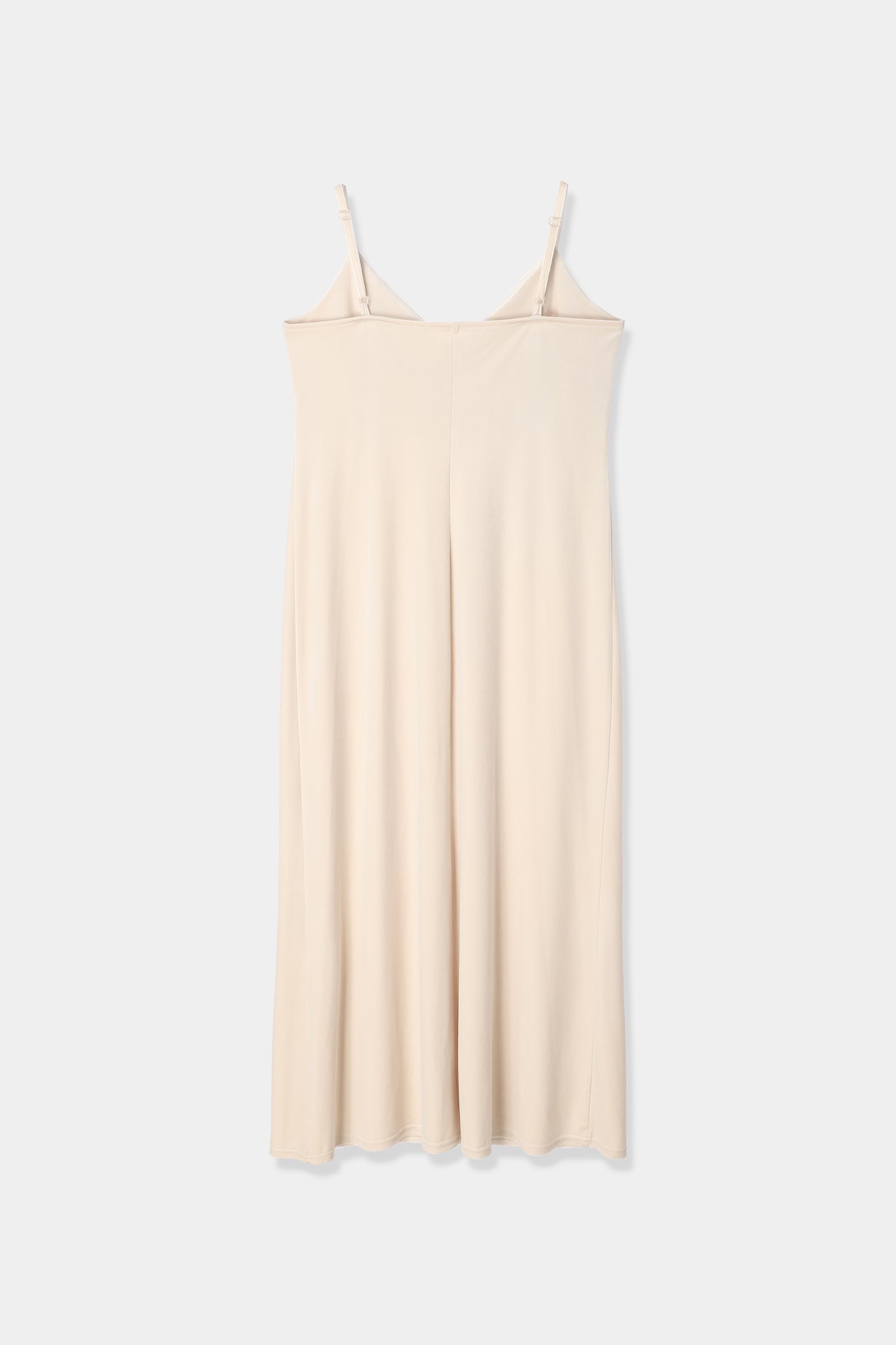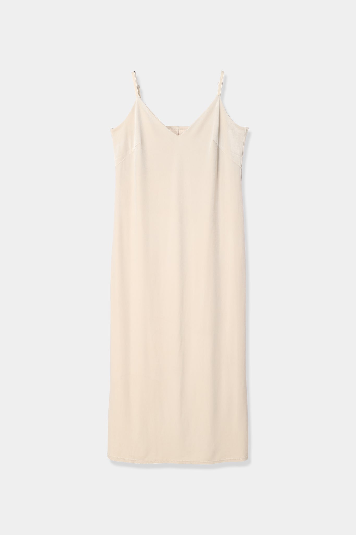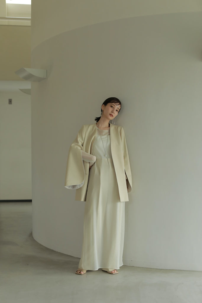 2つをレイヤードすることで、程よい肌見せが叶い、華やかさとシーズンムードが高まる一着となります。
