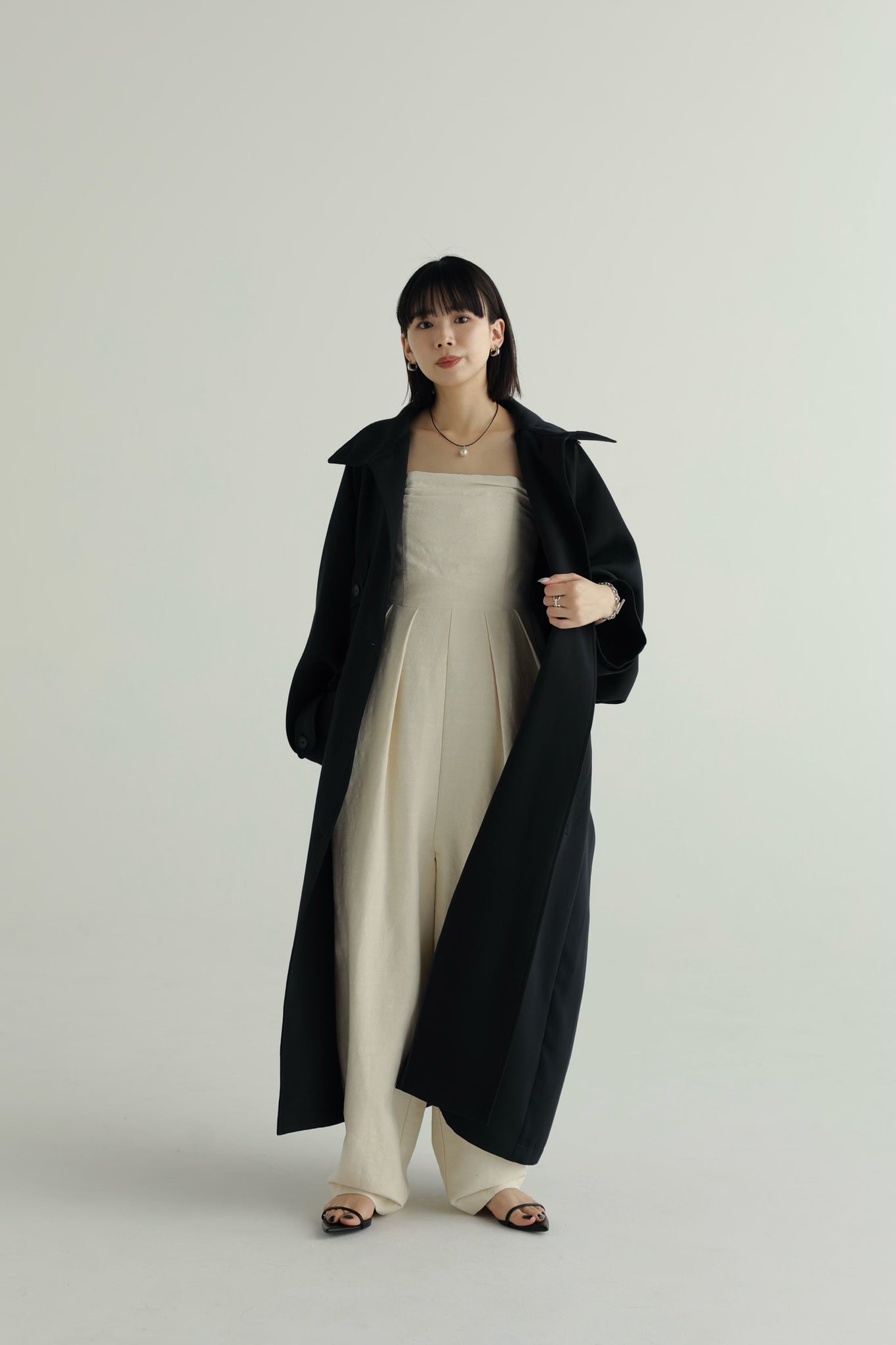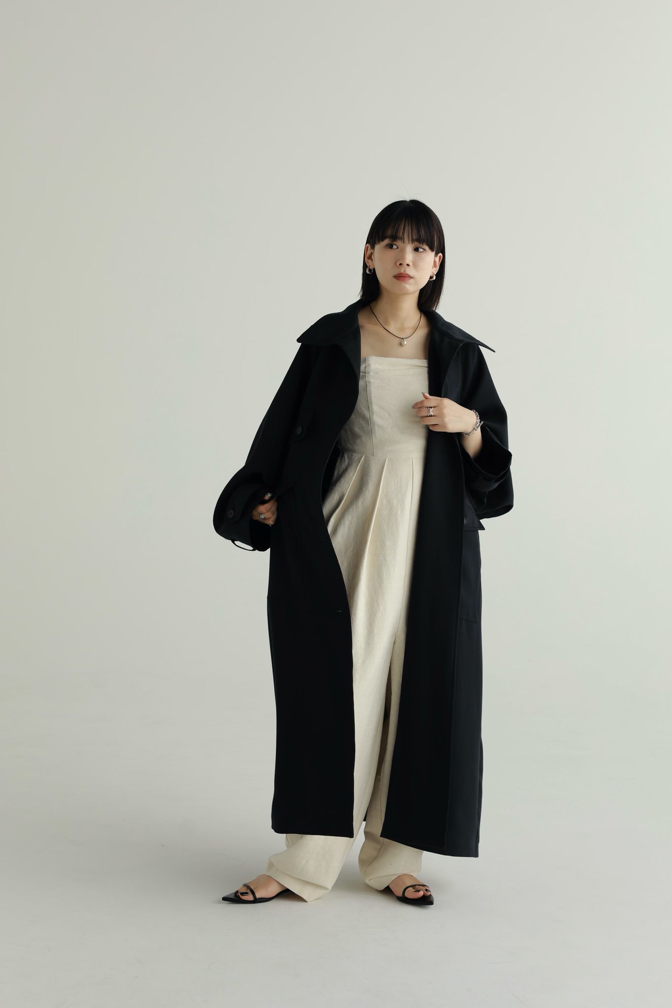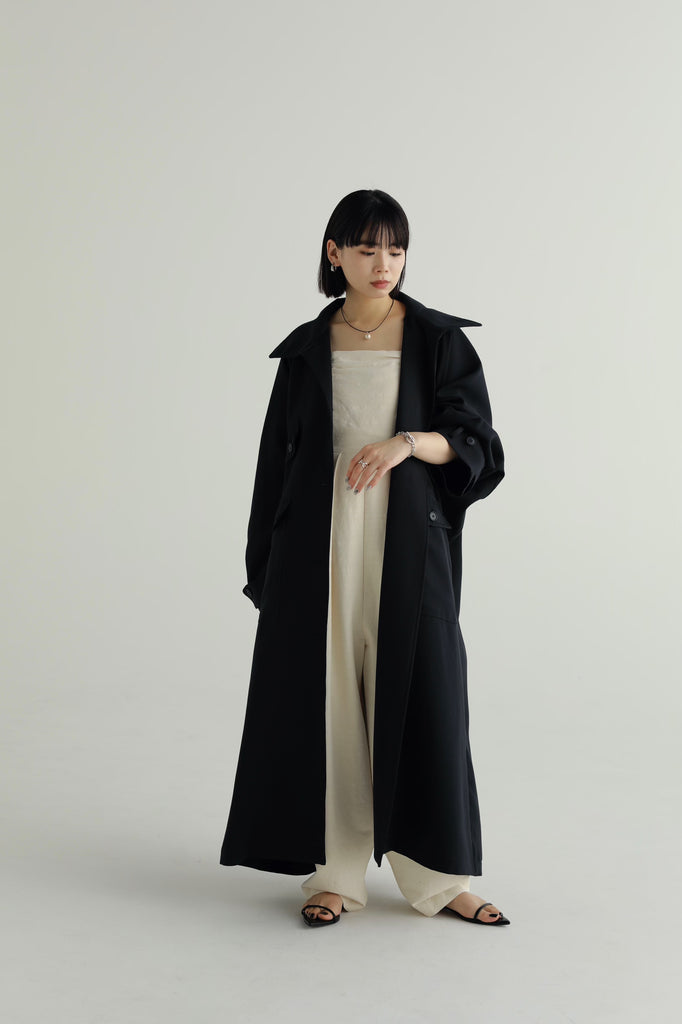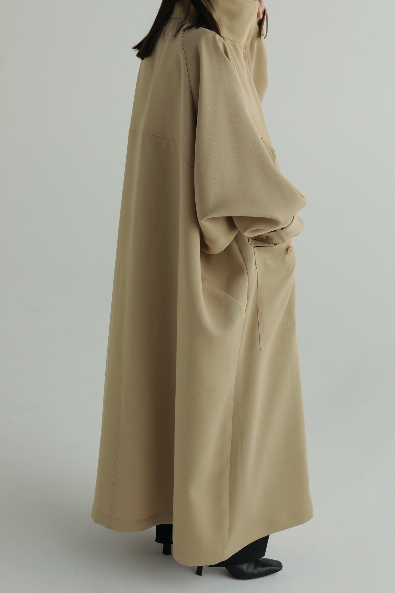 たっぷりとした分量感に緩やかなAラインシルエットでクラシカルな印象ながら、メンズライクな高めのスタンドカラーとやや太めのスリーブデザインで絶妙な抜け感をプラス。