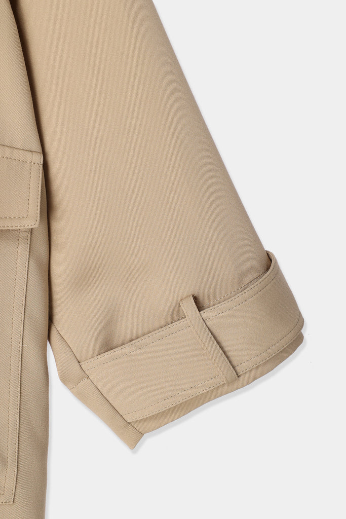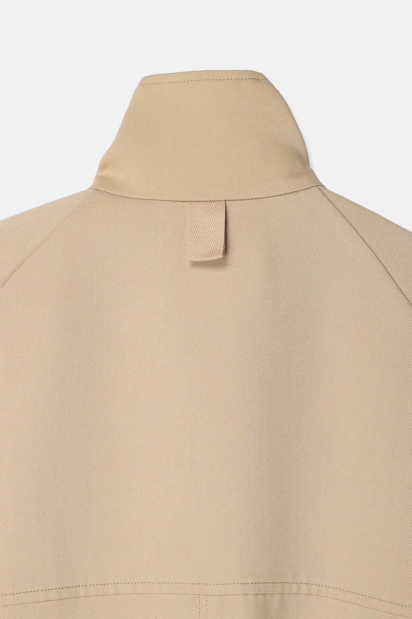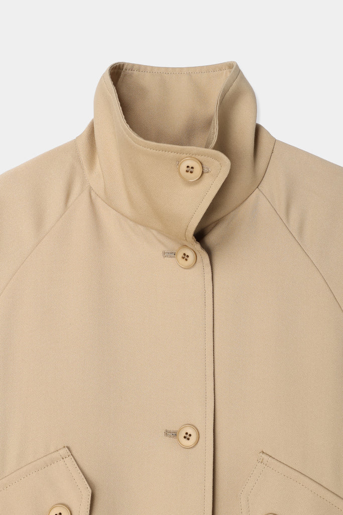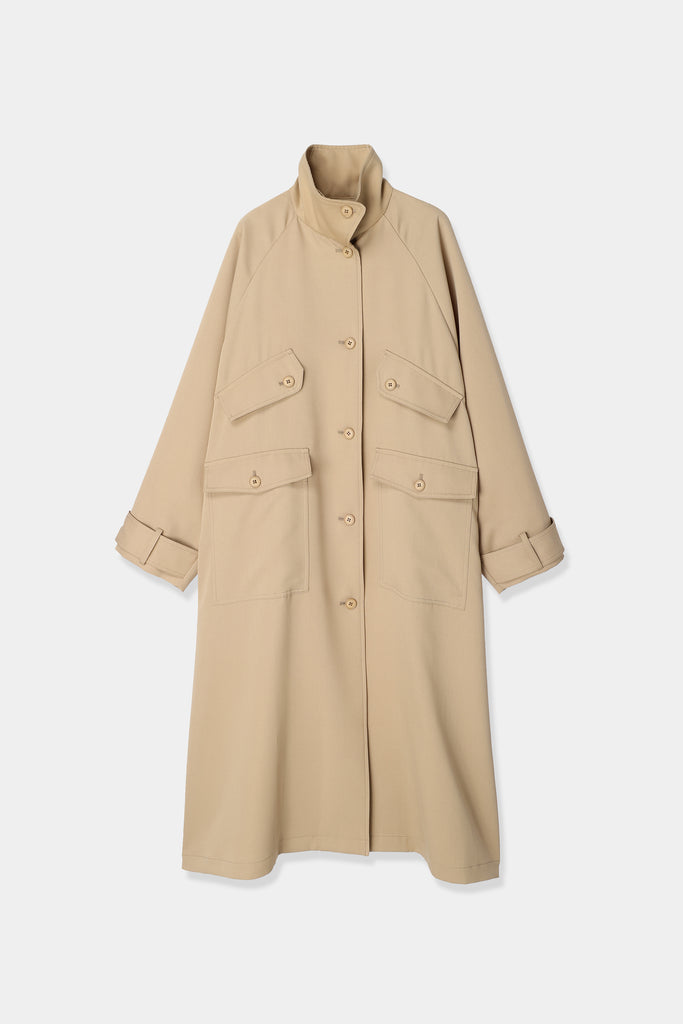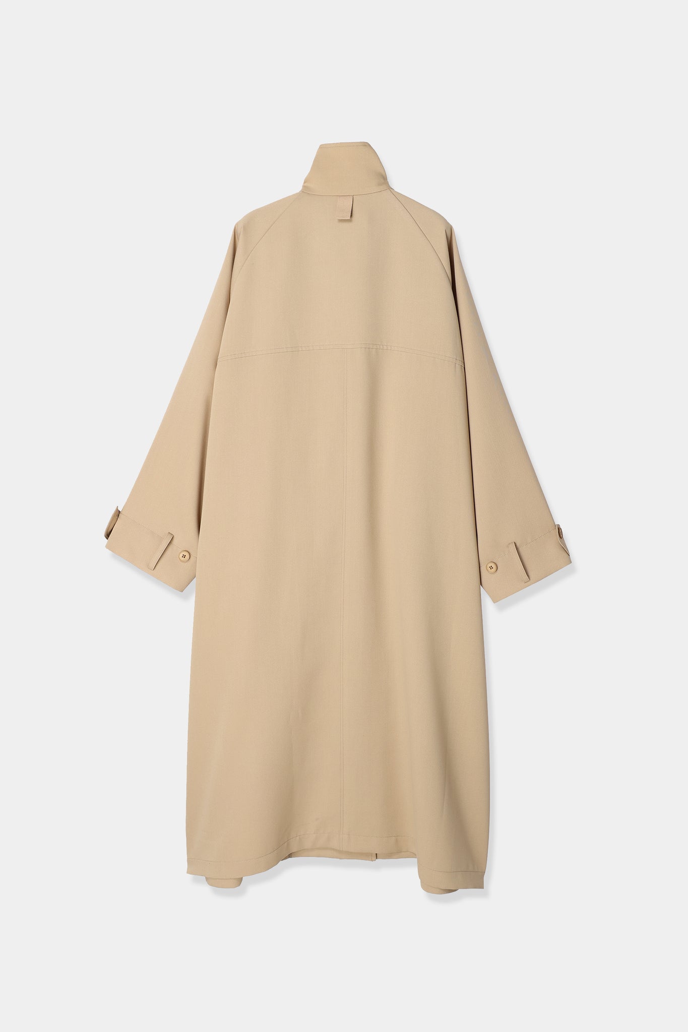 程よいハリ感のあるツイル地を使用したスタンドカラーのトレンチコート。