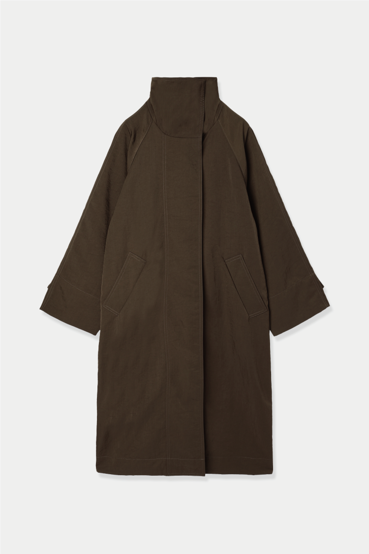 シンプルなデザインが素材の上質さを引き立てるロングコート。