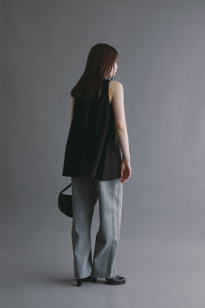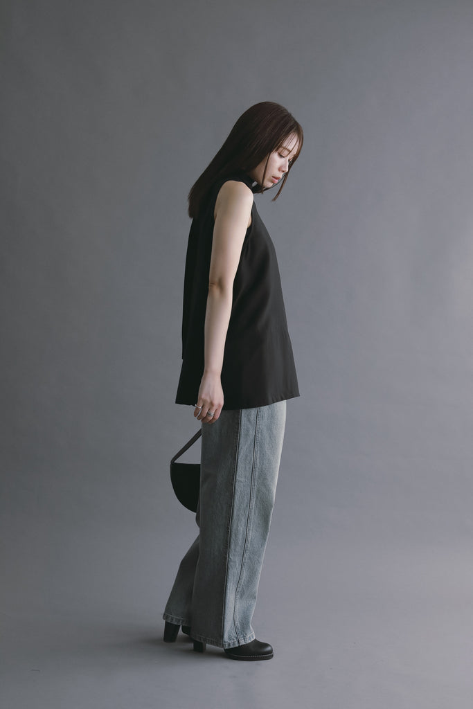 一般的なデニムには少ないサイドポケットと背面の箱ポケットを取り入れることで、視線が縦に流れ、全体をすらりと見せてくれるデザインに仕上げました。