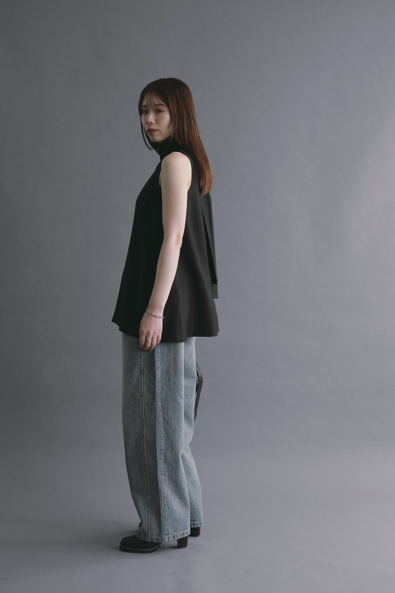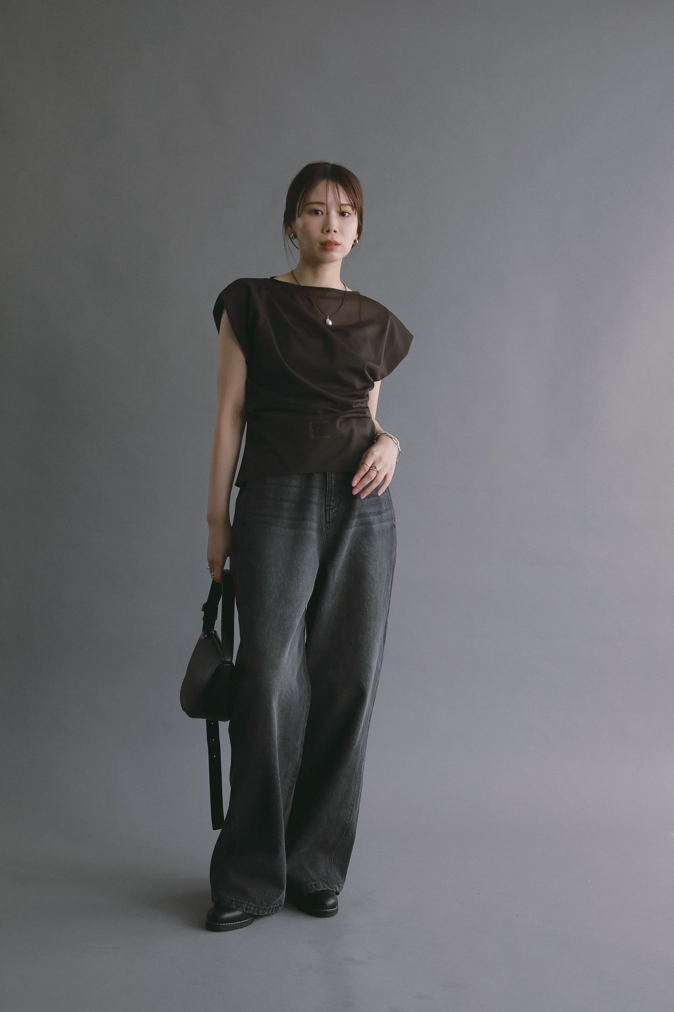 ゆとりがありながらも縦のラインが際立ち、バランスよく着用いただけます。