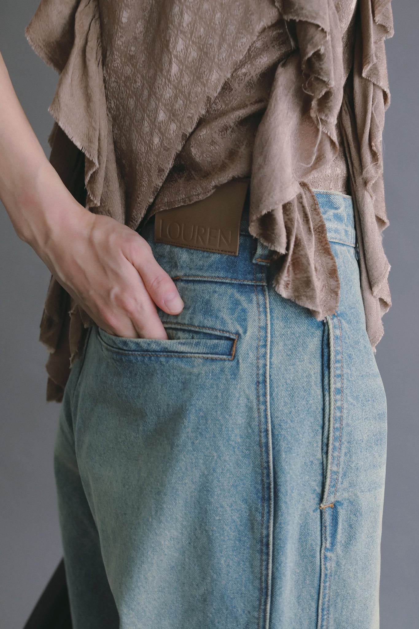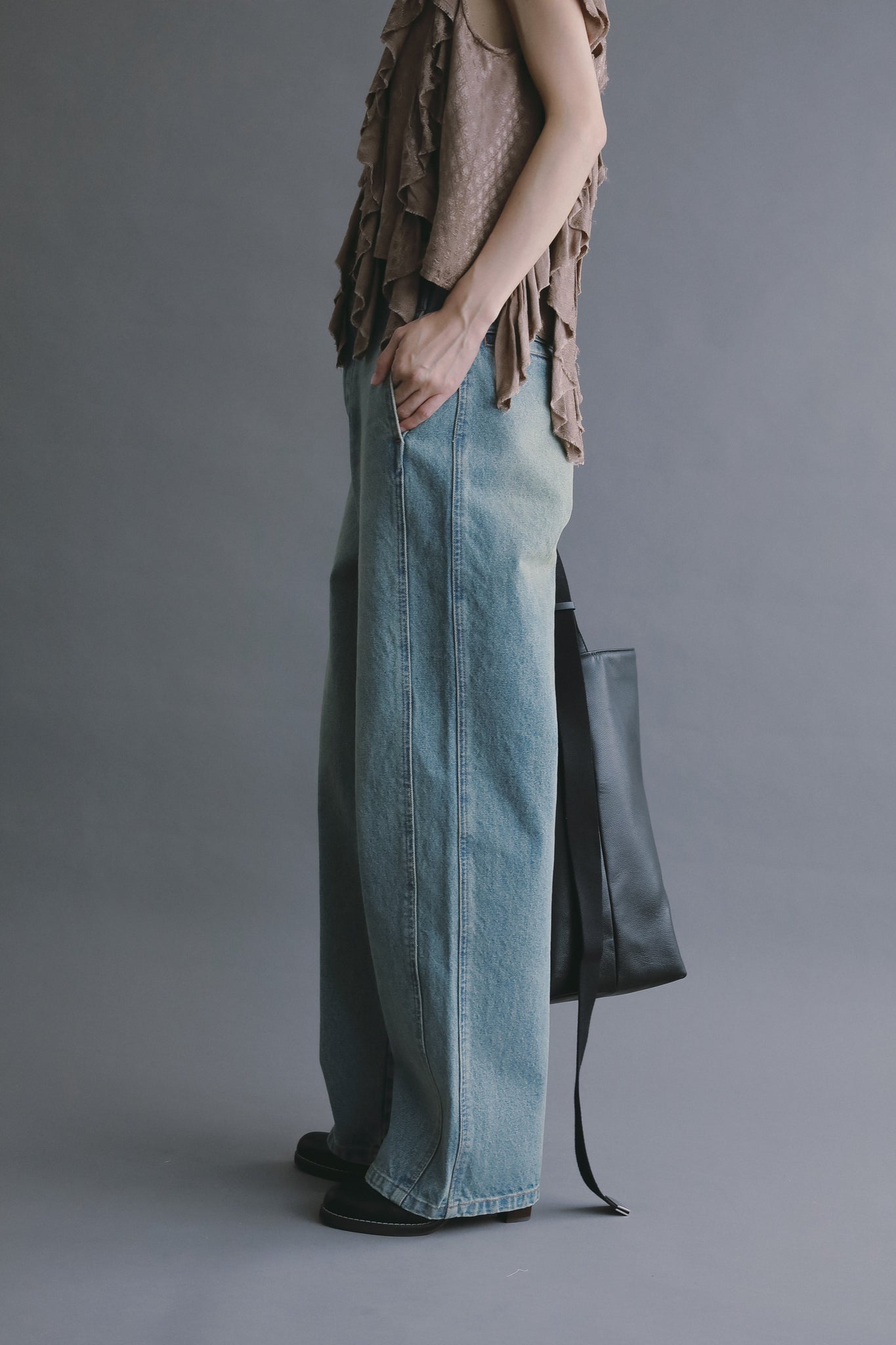 サイドポケットのディテールが印象的な、ヴィンテージライクデニム。
