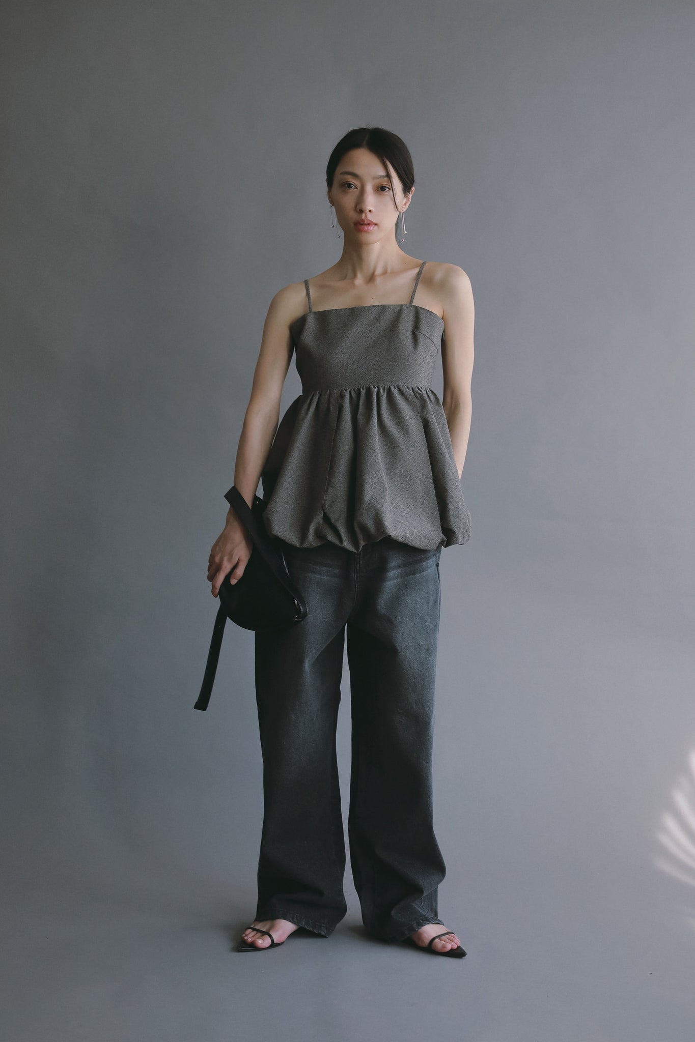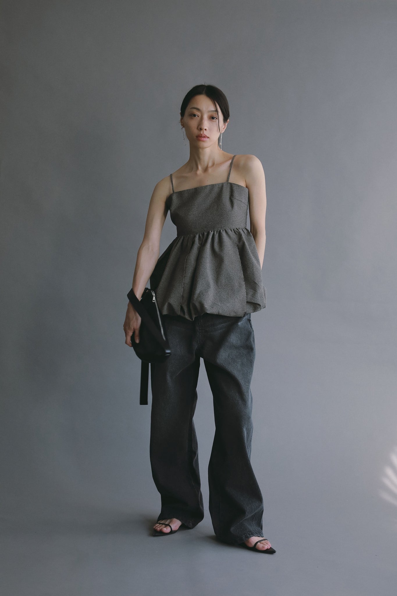 louren定番のコクーンシルエットをベースに、ヒップや脚のラインを拾わず立体的なフォルムを形成。