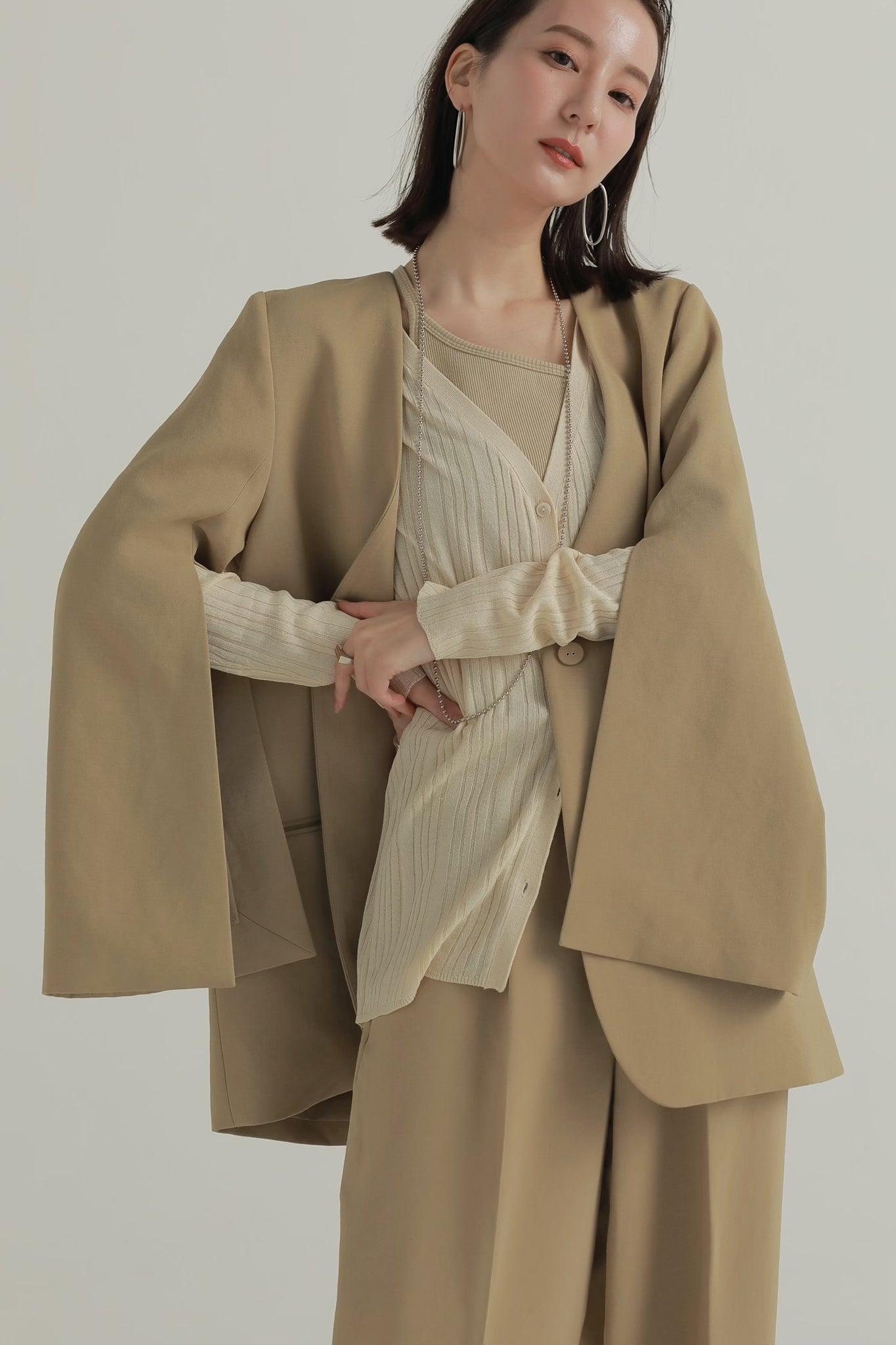 ベーシックなスタイリングにプラスするのに1枚は持っておきたい万能アイテムです。