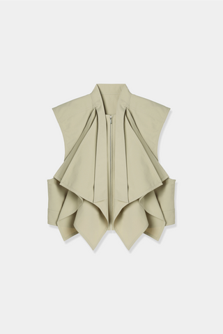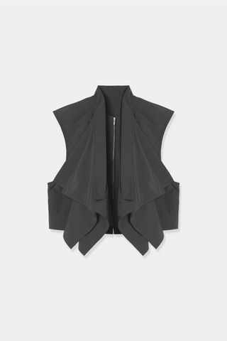 フロントにあしらったラッフルデザインが目を引くベスト。
